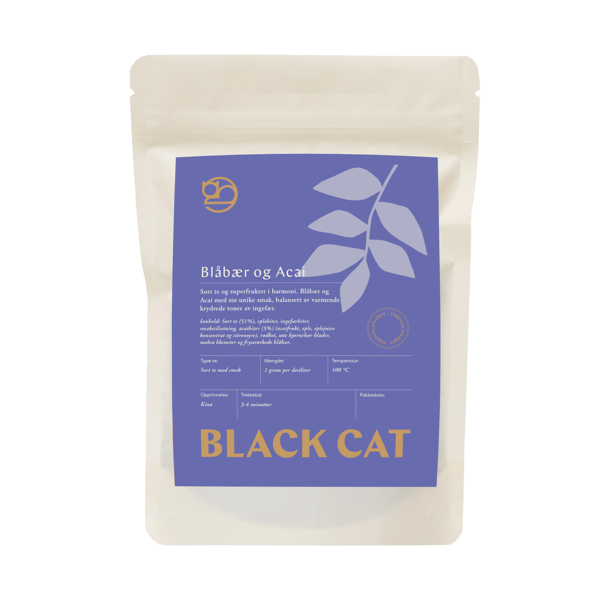 Sort te og superfrukter i harmoni. Blåbær og Acai med sin unke smak, balansert av varmende krydrede toner av ingefær.