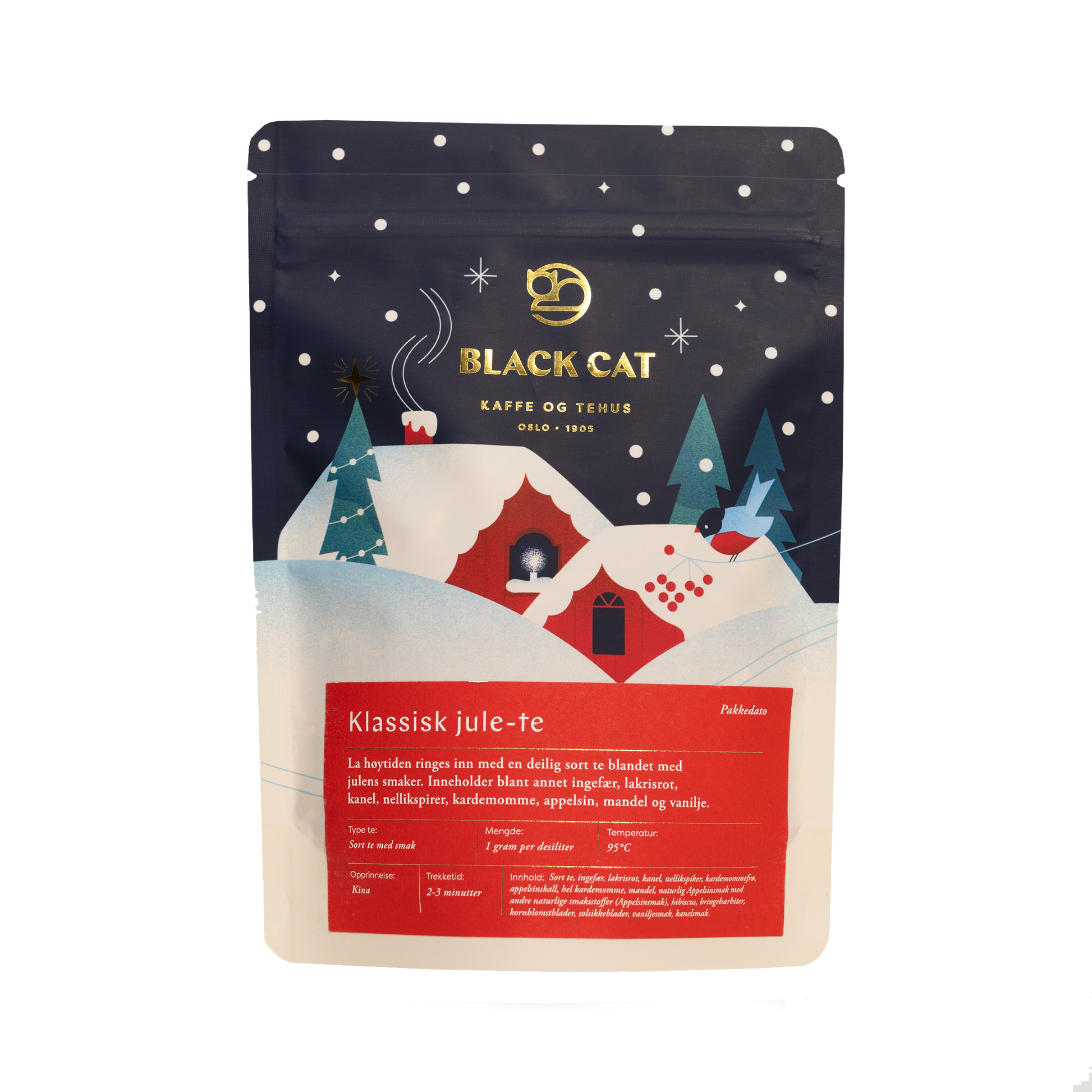 La høytiden ringes inn med en deilig sort te blandet med julens smaker. Inneholder blant annet ingefær, lakrisrot, kanel, nellikspirer, kardemomme, appelsin, mandel og vanilje.