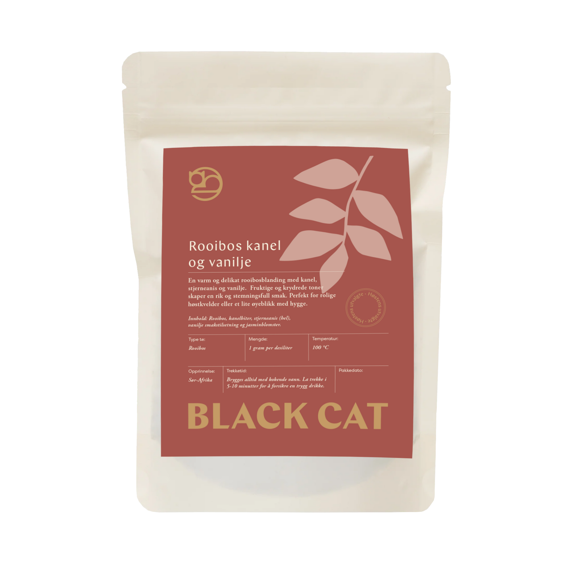 En varm og delikat rooibosblanding med kanel, stjerneanis og vanilje. Fruktige og krydrede toner skaper en rik og stemningsfull smak. Perfekt for rolige høstkvelder eller et lite øyeblikk med hygge.